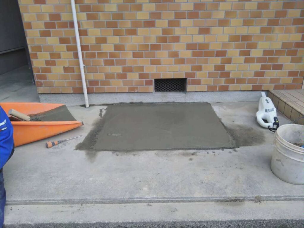 配管後のコンクリート復旧は、既存の地面と段差なく、水たまりができないよう滑らかに仕上げます。