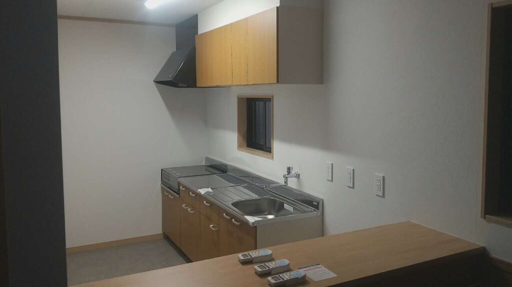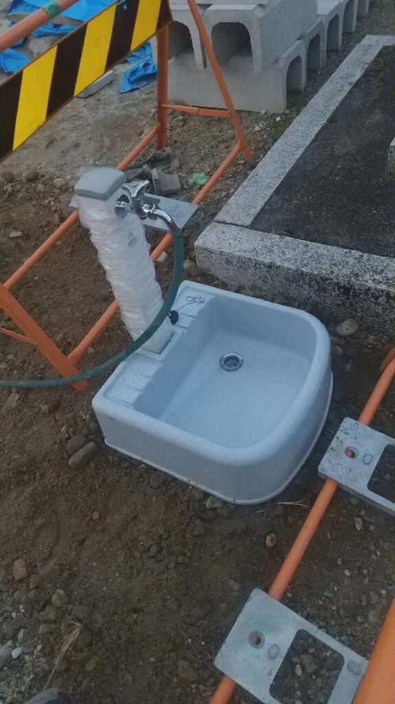 新築の集会所ということで、基礎段階の給排水設備からキッチン・洗面設備・トイレまで、一貫して施工を行いました。特に屋外の散水栓や水受け周りは、使い勝手と耐久性を考慮して設置いたしました。